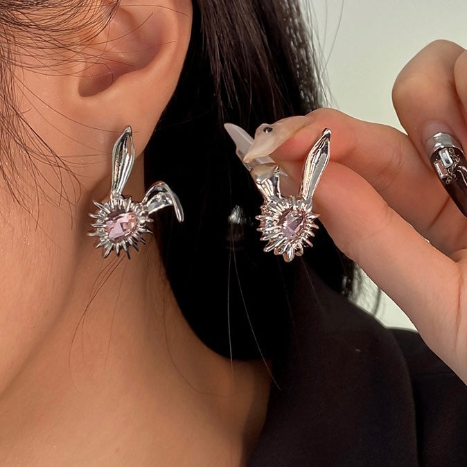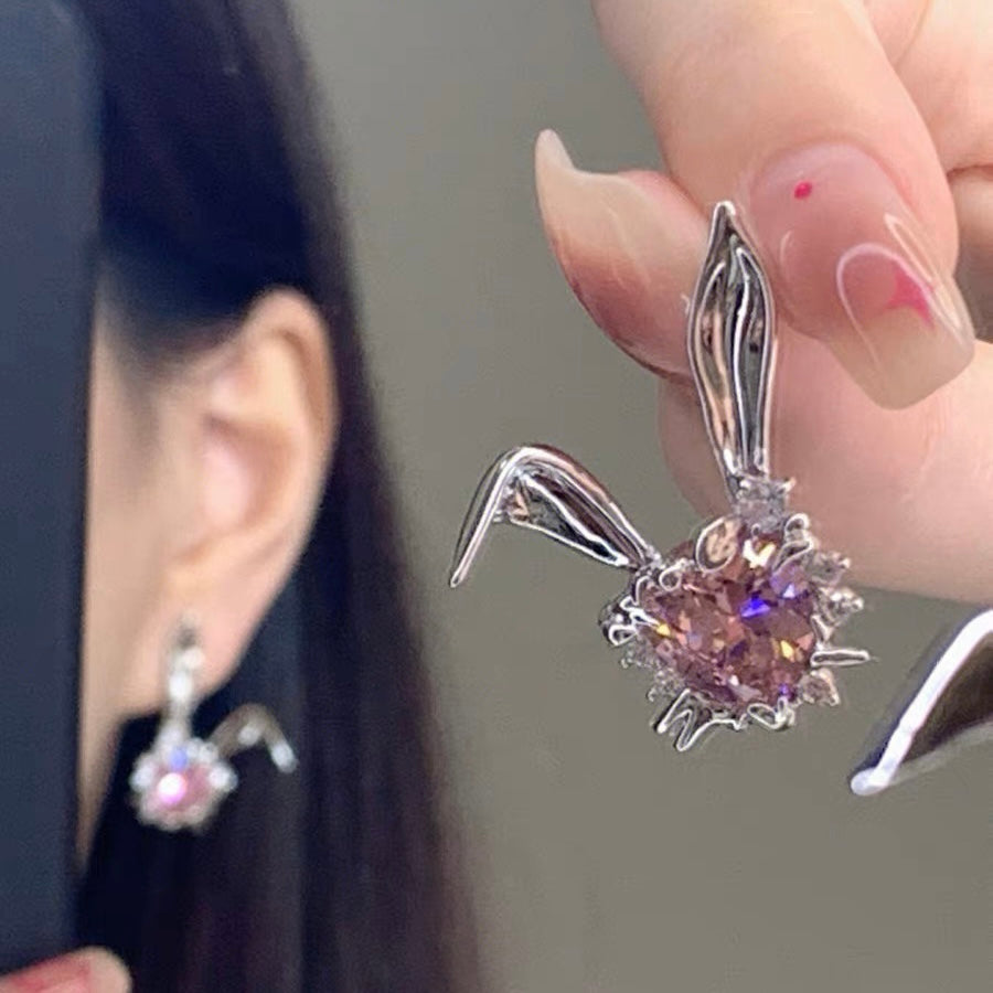 - Style: Pink Zircon Rabbit Stud Earrings