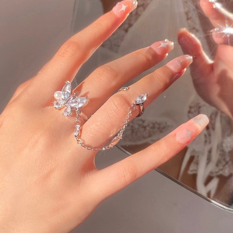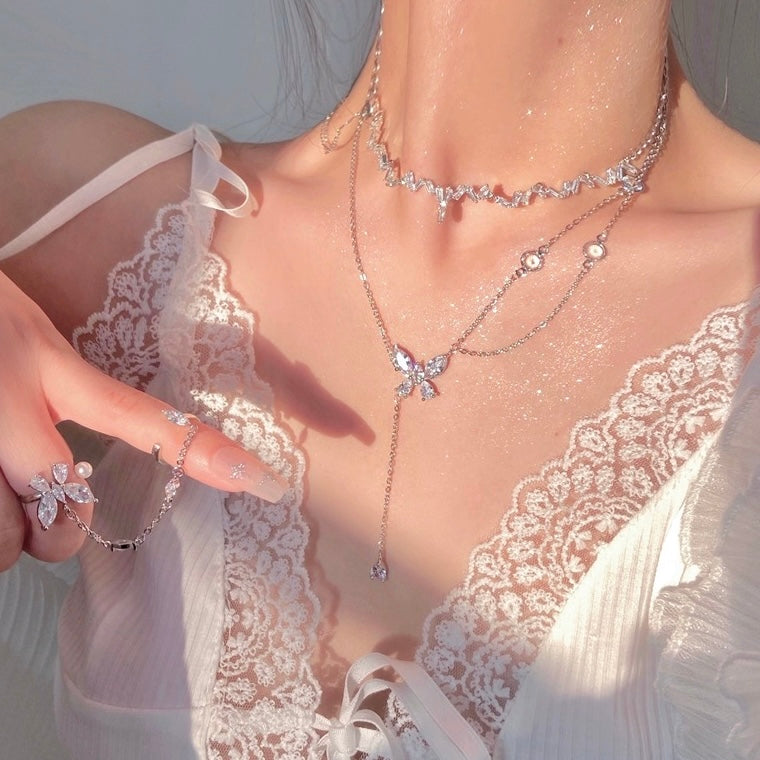Crystal Butterfly Double Layers Necklace ♡︎